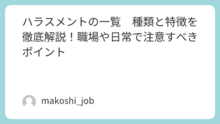 マコ氏最近、「ハラスメント」という言葉を耳にする機会が増えましたね職場や学校、日常生活の中で、ハラスメントは誰にとっても身近な問題です。しかし、ハラスメントにはさまざまな種類があり、それぞれの特徴や影響を理解することは、予防や対処のために重...